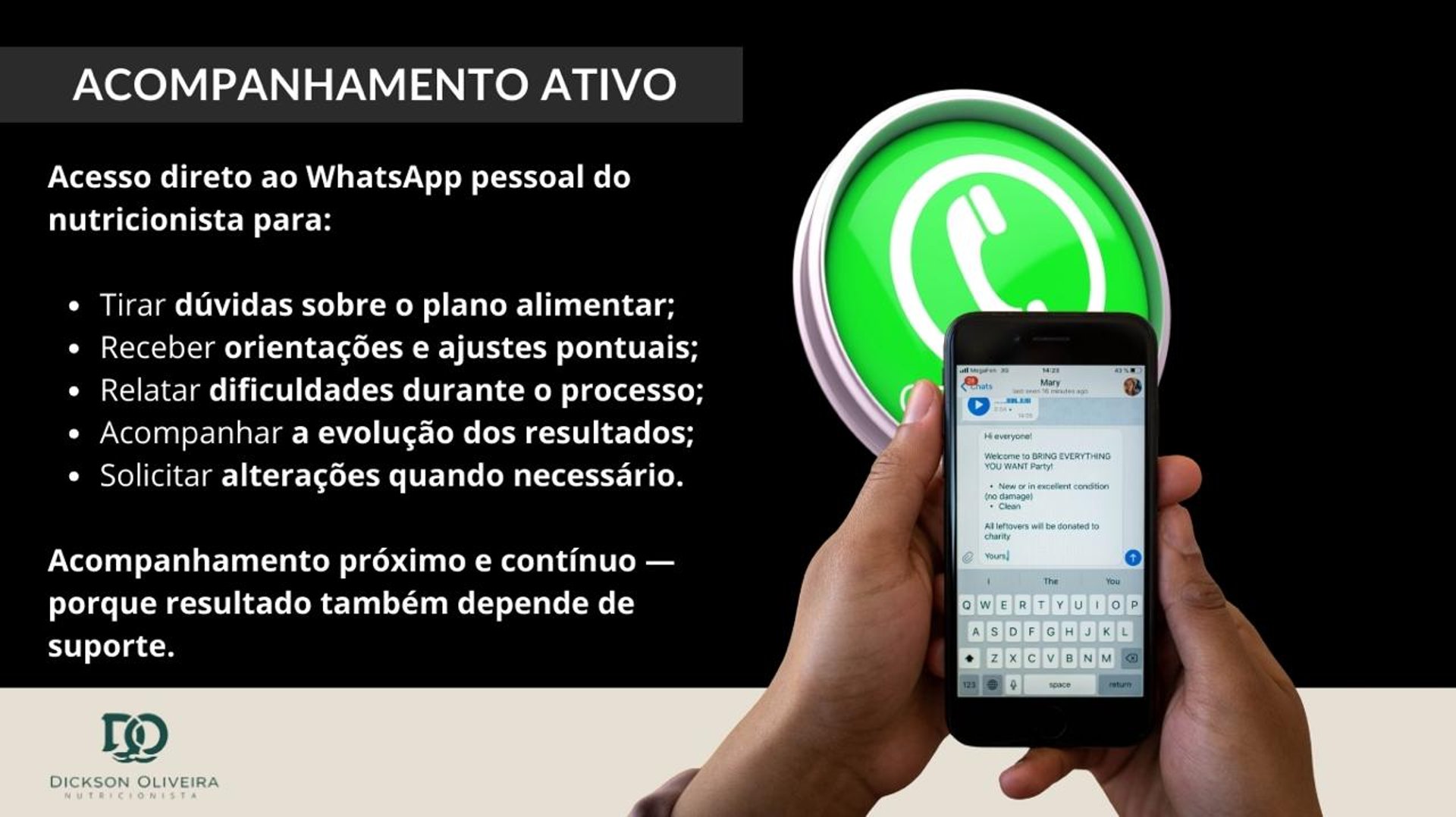 Eu conduzo um acompanhamento nutricional e metabólico completo, onde a dieta e o ajuste metabólico trabalham juntos para gerar resultado real.