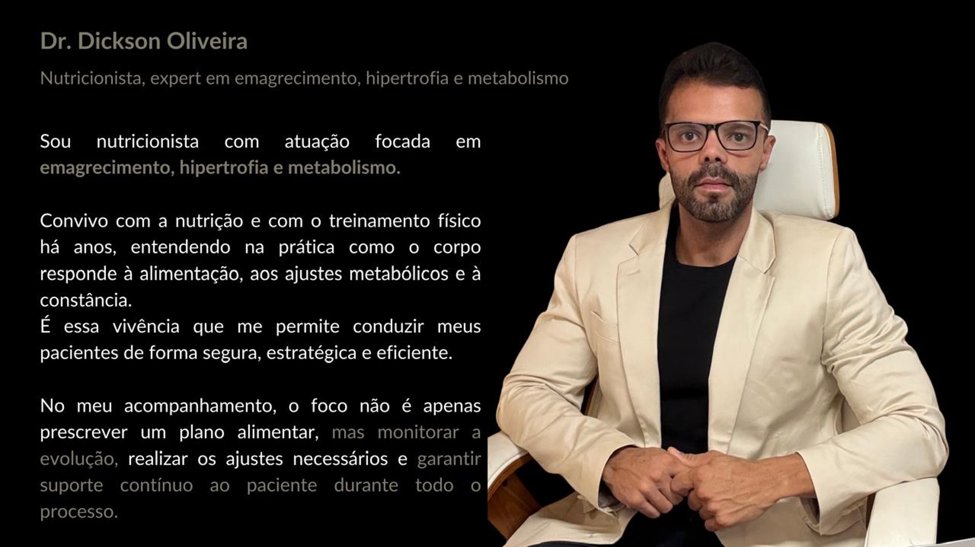 É um acompanhamento personalizado e estratégico, no no qual eu acompanho o paciente ao longo de 30 dias ajustando alimentação, metabolismo e estratégias de forma inteligente, conforme o corpo responde ao tratamento.